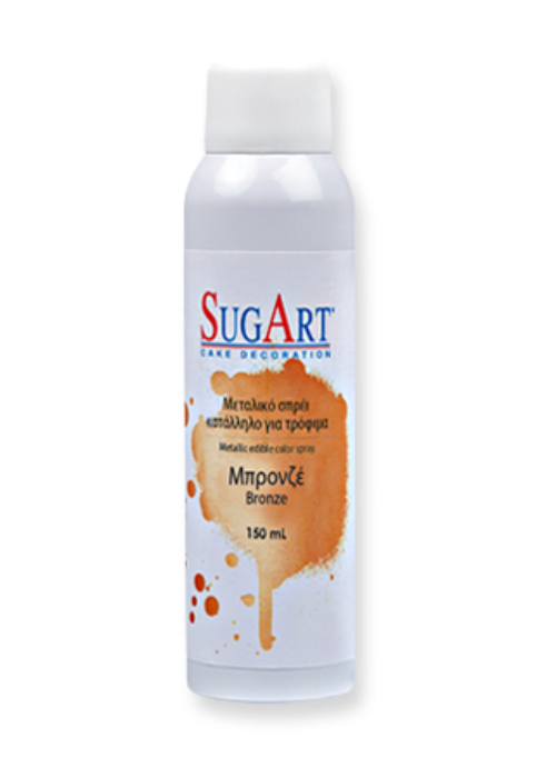 Μεταλλικό σπρέι μπρονζέ λάμψης 150 ml, κατάλληλο για τρόφιμα. Προσφέρει λαμπερό μεταλλικό φινίρισμα σε γλυκά, τούρτες και σοκολάτες! Εύκολο στη χρήση, γρήγορο στέγνωμα, ιδανικό για επαγγελματίες ζαχαροπλάστες.