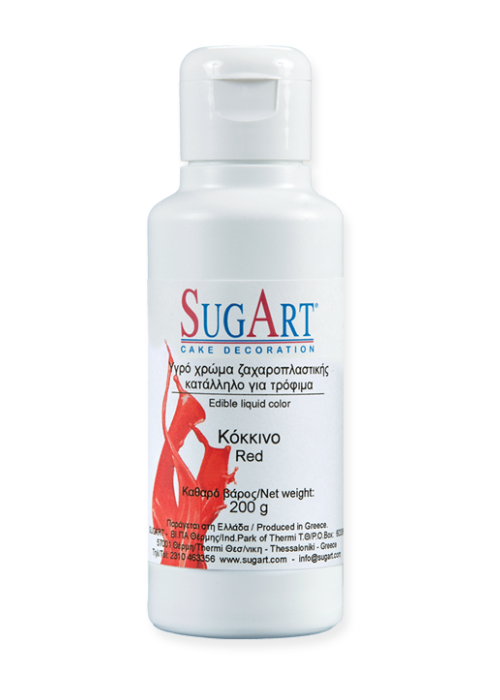 Υπερ-συμπυκνωμένο χρώμα ζαχαροπλαστικής Κόκκινο Sugart 200gr. Ιδανικό για βουτυρόκρεμα, icing, μακαρόν, παντεσπάνια και γκανάζ. Έντονο, σταθερό και ομοιόμορφο κόκκινο χρώμα με μέγιστη απόδοση – ιδανικό για επαγγελματική χρήση στη ζαχαροπλαστική.