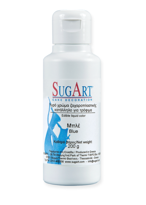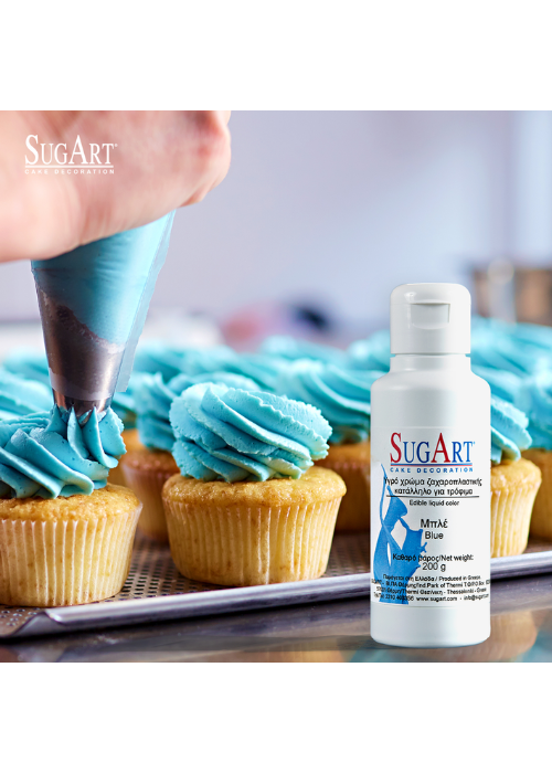 Υπερ-συμπυκνωμένο χρώμα ζαχαροπλαστικής Μπλε Sugart 200gr. Κατάλληλο για βουτυρόκρεμα, icing, γκανάζ, μακαρόν και παντεσπάνια. Έντονο, σταθερό και ομοιόμορφο χρώμα με μέγιστη απόδοση – ιδανικό για επαγγελματική χρήση στη ζαχαροπλαστική.